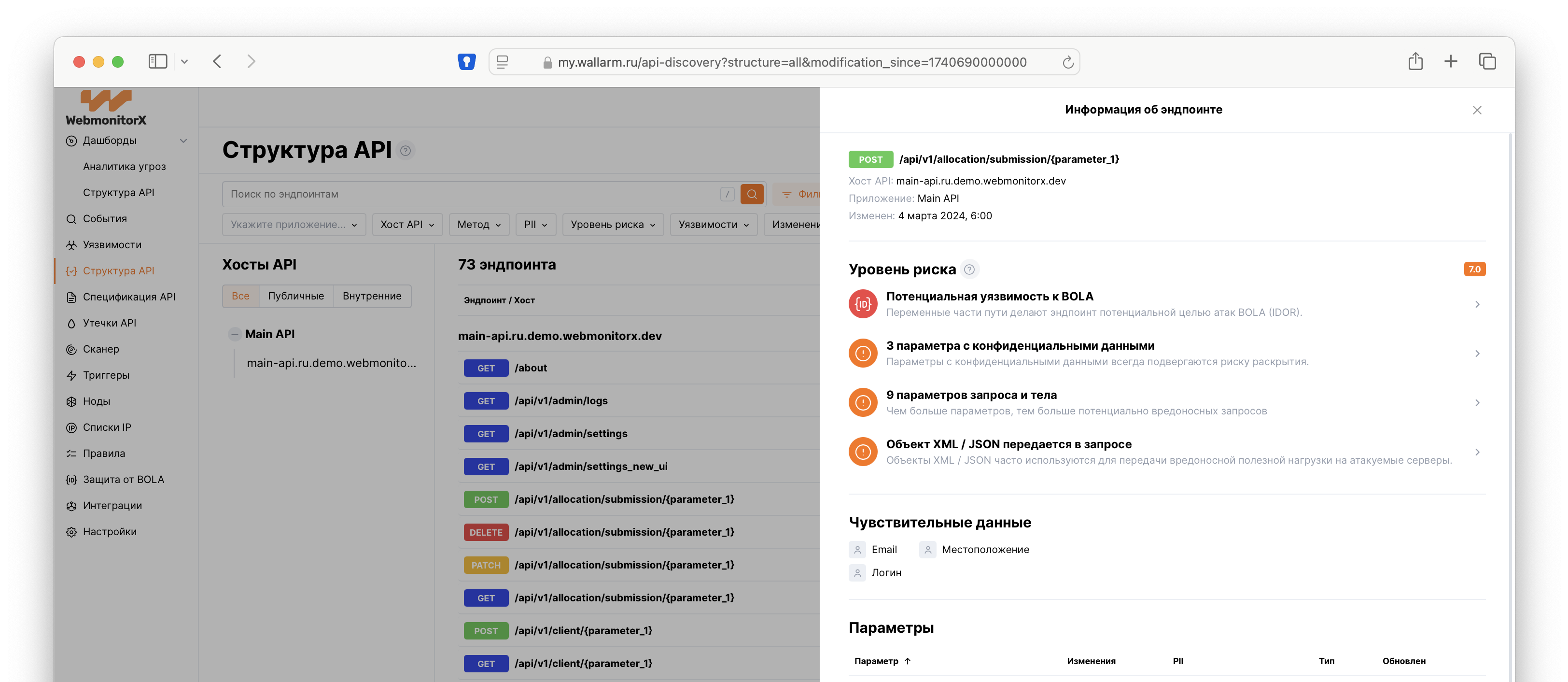 Выявление наличия чувствительных данных PII, передаваемых в параметрах API